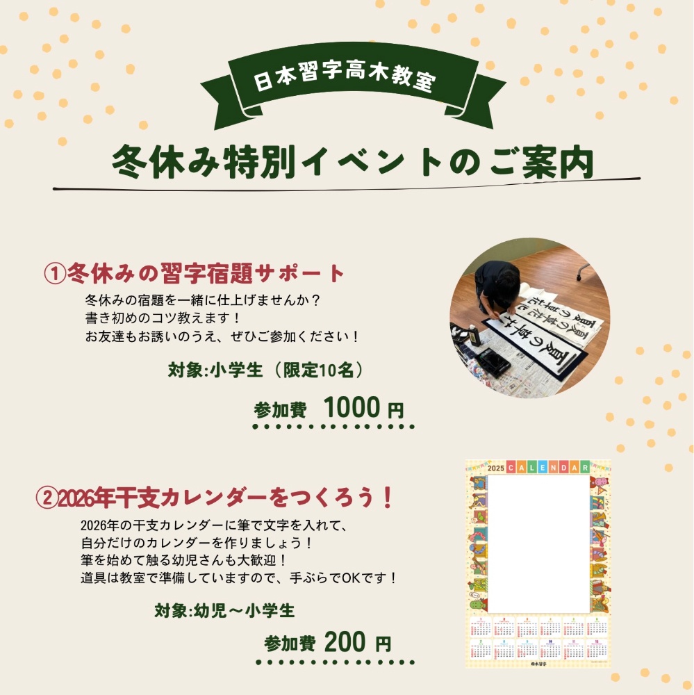 1. 冬休みの習字宿題サポート(参加費1,000円)